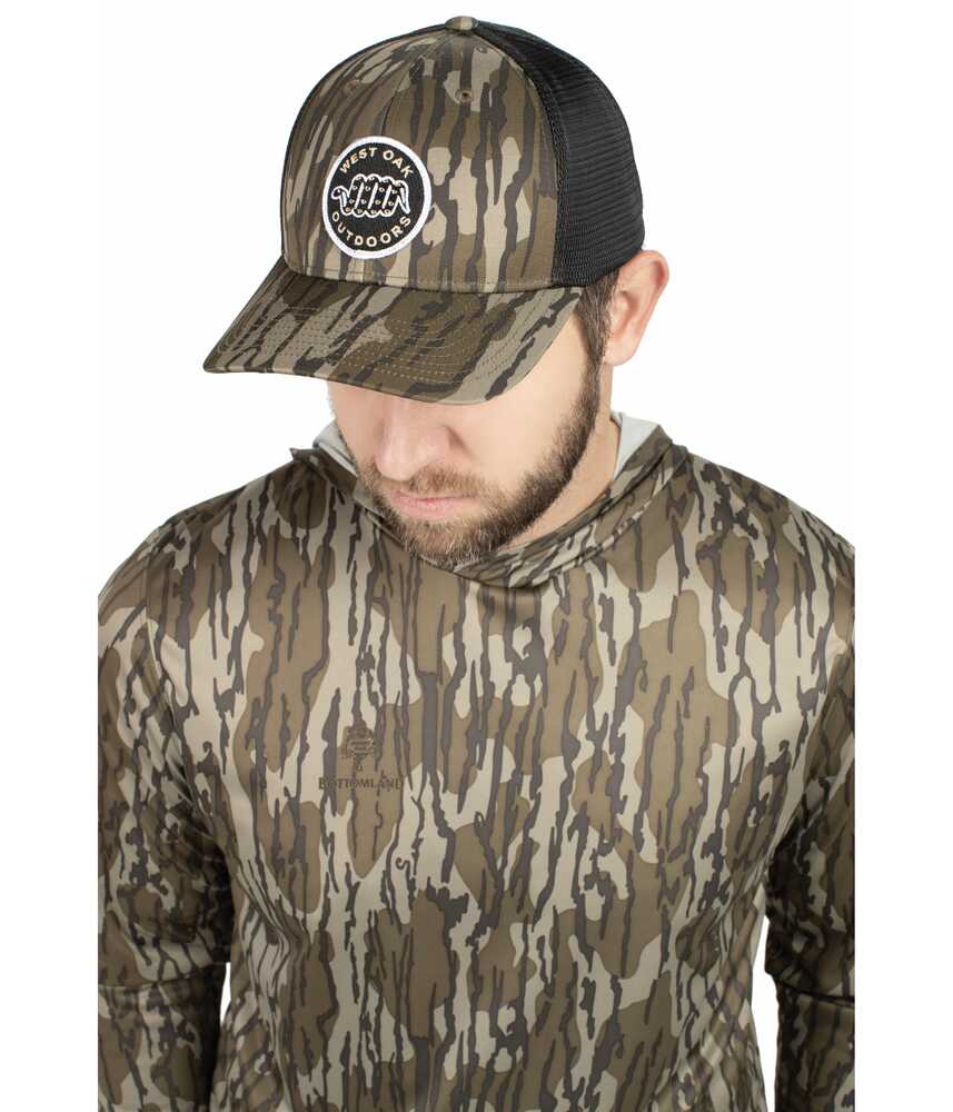 * Polyester blend * Stretch Trucker Mesh * Sublimated Mossy Oak(r) camo front panels & visor * Low-profile * Pro-model * Curved visor * Front panel eyelets * Pro-stitched finish * Closed back