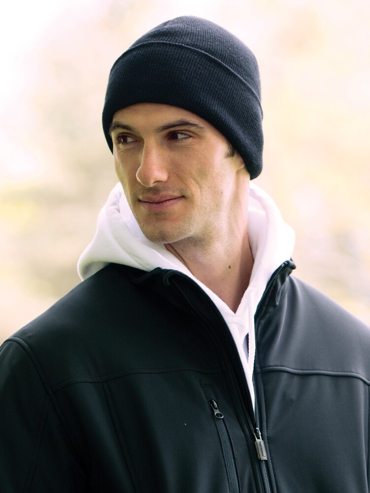 100% acrylic with 40 grams of 3M™ Thinsulate™ Insulation 3” folding cuff *51/49 acrylic/polyester.