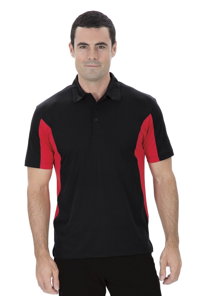 6.3-oz, 100% performance polyester flat tricot micropique. Self-fabric collar. Contrast panel at sides and centre back of collar. Moisture wicking. Snag resistant. Breathable. Tagless. Classic fit. Due to the nature of polyester, special care must be taken throughout the decoration process. Please refer to product size spec PDF file for more details.