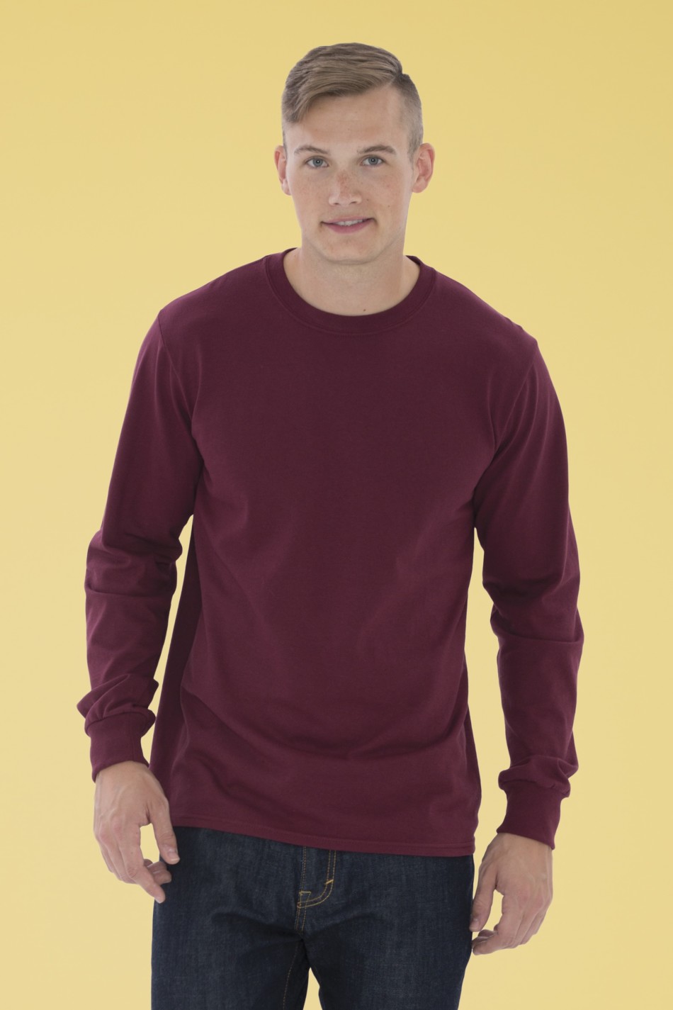9.1-oz, 100% cotton. Compacted yarns to minimize shrinkage. Taped neck and shoulders for comfort and durability. Tear away label for private branding. Rib knit cuffs. Classic fit. *90/10 cotton/polyester (Athletic Heather). **50/50 cotton/polyester (Dark Heather Grey, NEW Safety Green, NEW Safety Orange). ***98/2 cotton/polyester (Ash Grey). OEKO-TEX® STANDARD 100. *OEKO-TEX® Standard 100 certification applies to blank apparel.